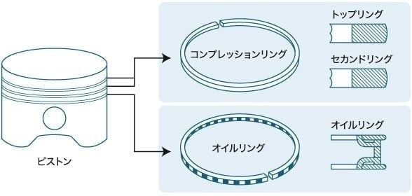 潤滑油としてのエンジンオイルを、適量(必要最小限の量)だけをシリンダー壁に残して、余分なオイルは掻き下げる機能を持っている。