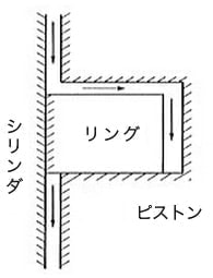 ピストンリングがシリンダとピストンリング溝に各々密着してガスの流れを防ぐ。ピストンリングが浮き上がっていたり、上下面の平坦度が不足していたらガスが漏れてしまう。ピストンリングの上下面は精密に研磨仕上げされており、表面粗さは1ミクロンメーター(1μm=1/1000mm)程度になっている。