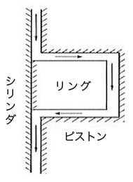 ピストンリングがシリンダとピストンリング溝に各々密着してガスの流れを防ぐ。ピストンリングが浮き上がっていたり、上下面の平坦度が不足していたらガスが漏れてしまう。ピストンリングの上下面は精密に研磨仕上げされており、表面粗さは1ミクロンメーター(1μm=1/1000mm)程度になっている。