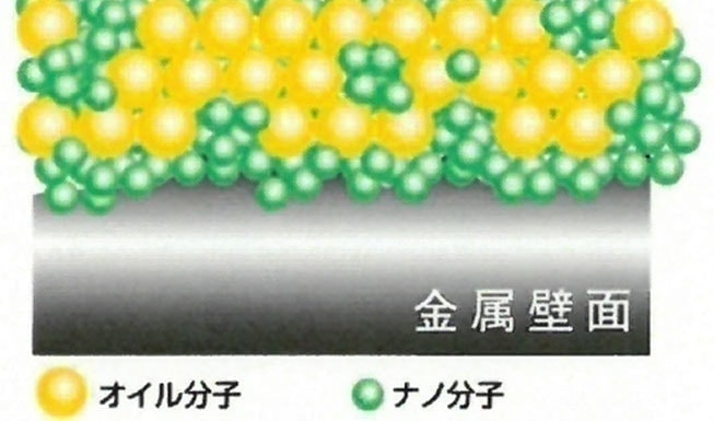 ・オイル分子の1/20以下のナノ粒子が、オイルの隙間に入り込む。